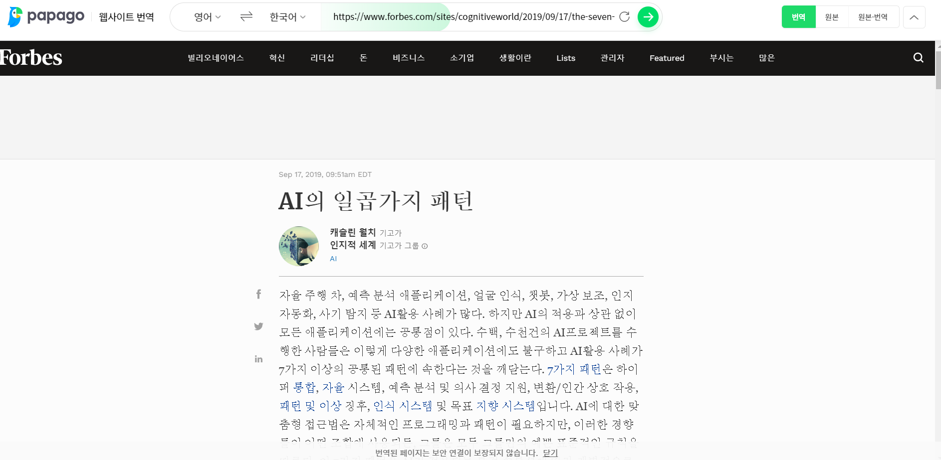 위의 빈칸에 번역하고자 하는 웹사이트의 주소를 붙여넣으면 아래 사진처럼 번역을 해준다. 실제로 사용해본 결과 번역도 꽤 그럴듯하게 된다.