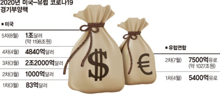 미국은 몇조 달러씩, 유럽은 몇천억유로씩 돈을 풀고 있습니다. 경기부양에 이렇게 의지를 보이는 만큼, 코로나19 리스크가 해소된다면 수요 증가와 경기 활성화를 기대해볼 수 있습니다.(보복 소비의 가능성도 염두해둬야죠)