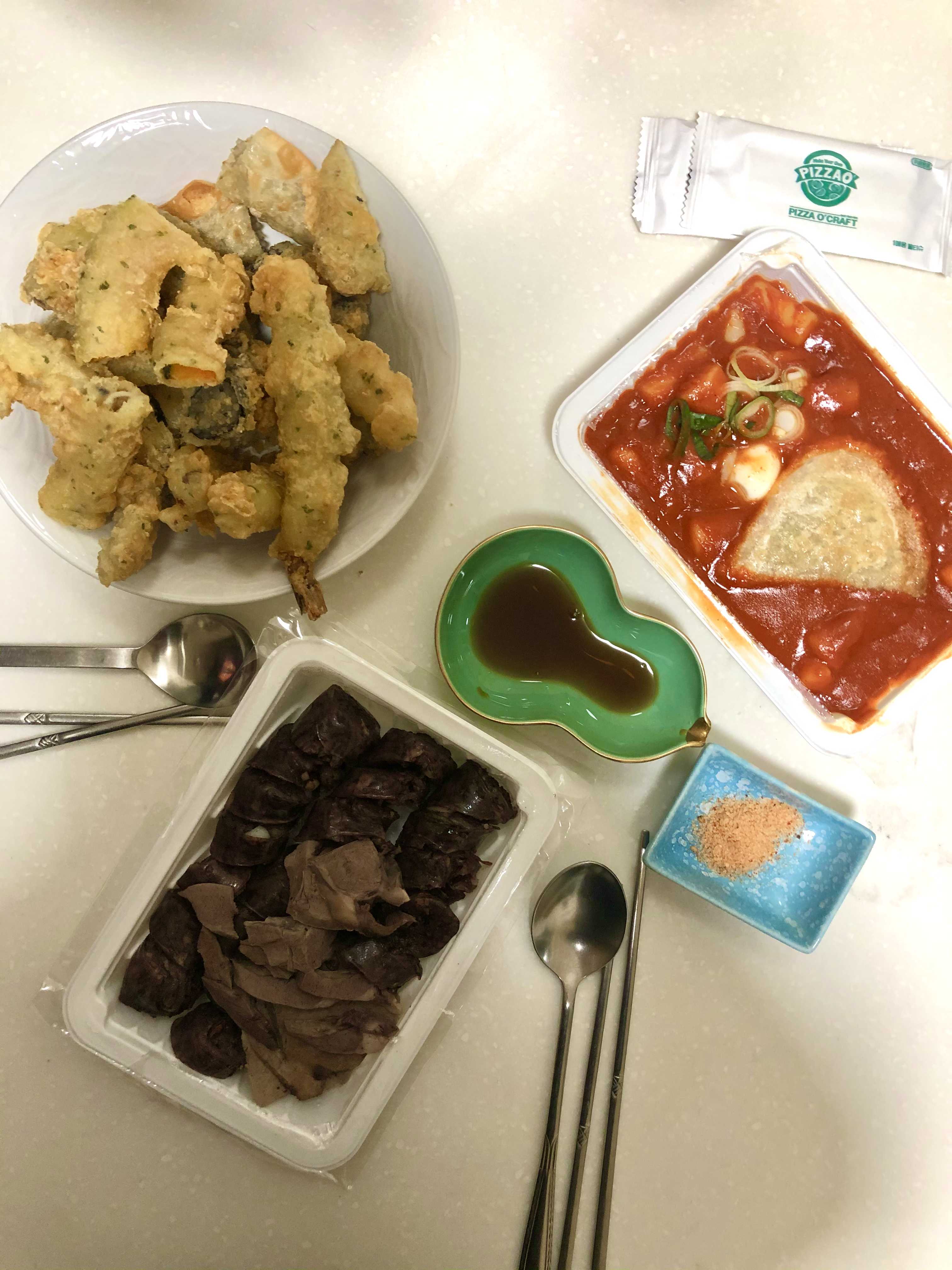 프랜차이즈 분식점 가운데 내가 생각하기에 가장 무난하면서도 호불호 안갈릴 것 같은 죠스떡볶이의 떡볶이! 무난히 맛있는 양념이랄까? 그리고 난 별로 안좋아하는 오뎅이 없어서 좋았다. 순대도 냄새 안나고 무난한 편. 대신 여기 튀김이 미친넘이다ㅋㅋㅋ엄청 오랜만에 사먹었는데, 점바점이 있을 수 있지만 동백점은 튀김이 아주 굿!!! 엄청 바삭하고 안의 내용물도 실해서 놀라버림. 자주 시켜먹어야겟다고 생각(응?!?^^)