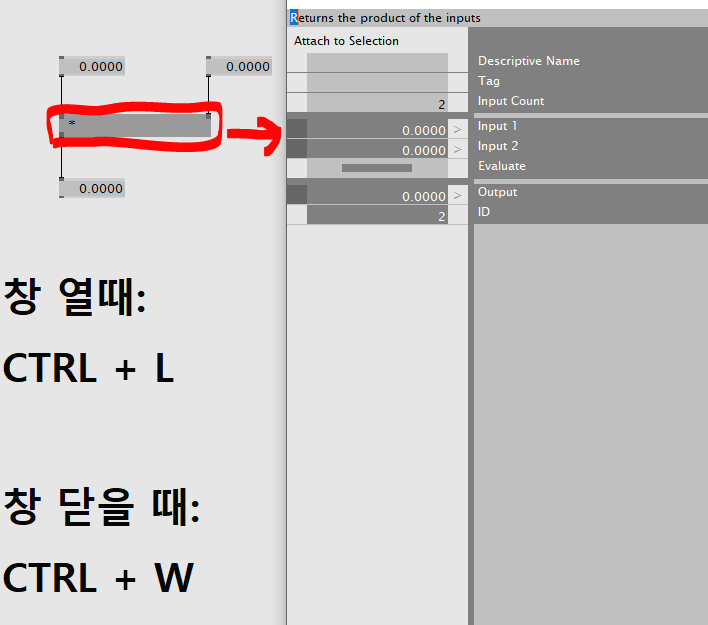 실제 inspektor 활용의 예를 보자. 원래 *(곱하기)노드는 인풋핀이 2개이다. 하지만 이럴 경우 3자리수의 곱셈을 하려면 *(곱하기)노드를 2번을 써야 한다. 코딩의 핵심은 간결성이다. 같은 목표를 달성할 수 있다면, 간결한 코드일수록 효율성이 높기 때문이다.
