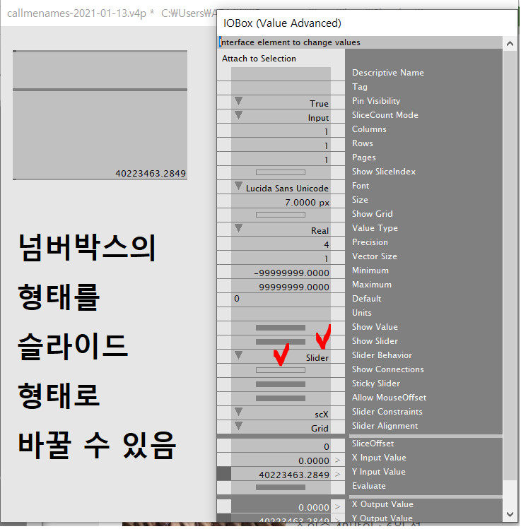 이렇게 넘버박스는 입력과 출력 모두를 슬라이더를 포함한 다양한 형태로 나타낼 수 있다. 슬라이더 이외의 형태는 추후에 새로운 형태가 나오게 되면 그때 그때 설명해보려고 한다.