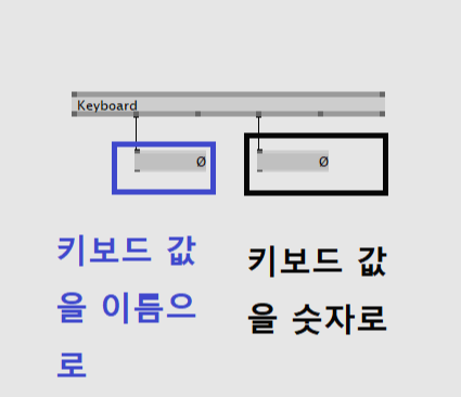 위처럼 keyboard 노드를 활용해 외부에서 입력되는 keyboard 값을 판별할 수 있다. Keyboard 노드의 두번째 아웃풋핀은 누른 키보드 값을 이름으로 나타내고, 4번째 아웃풋핀은 누른 키보드 값을 수치로 나타낸다.