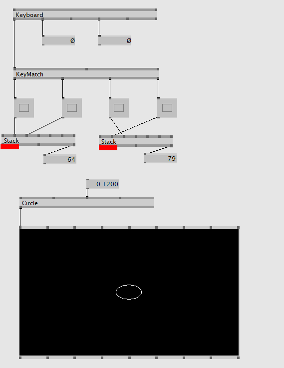 Keyboard 노드 / KeyMatch 노드 / Stack 노드 / Map 노드를 활용해 키보드 방향키에 의해 움직이는 원을 만들어보려고 한다.