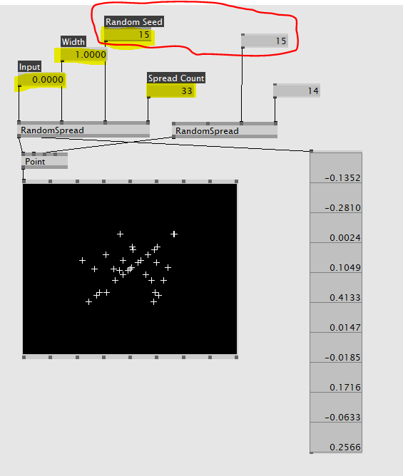 이때 특이한 것은 다른 스프레드에는 없는 Random Seed 라는 핀이다. 랜덤 시드는 난수 데이터가 생성되는 패턴이다. 즉, x값과 y값의 랜덤패턴이 같으면 난수로 뽑는다고 해도, 비슷한 숫자가 산출될 수 있으므로 서로 다른 랜덤시드 값을 사용하는게 좋다.