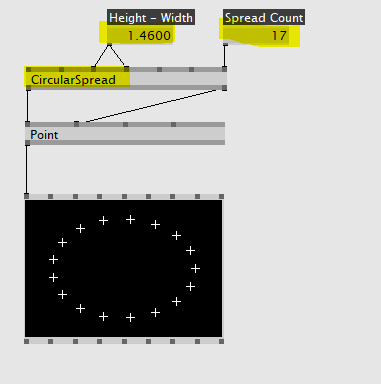 원형 스프레드는 원의 높이와 너비를 정하고 그 안을 채울 스프레드 수를 정하면 그에 맞춰 원 위의 수치들을 생성한다. 즉, 원 위의 점들의 좌표값을 생성한다고 생각하면 되겠다.