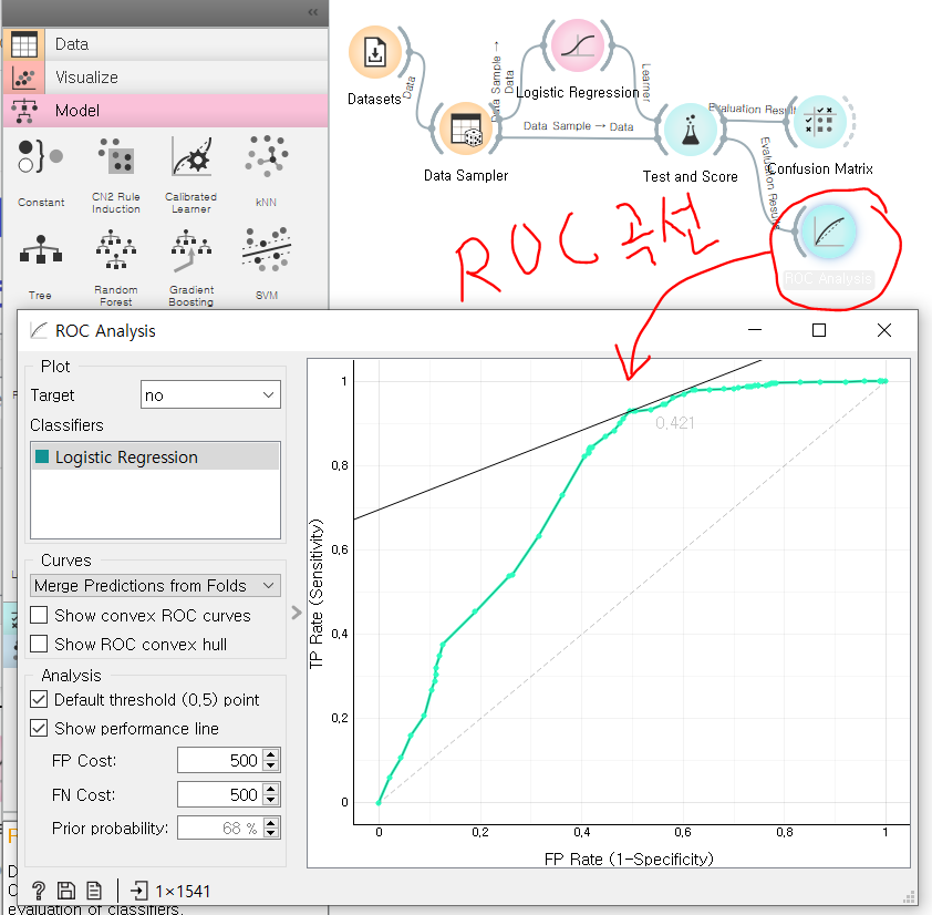 마찮가지로 ROC 곡선도 위젯으로 확인해볼 수 있다.