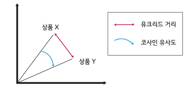 -코사인거리 : 문서의 분류, 군집화에 활용 / 백터(방향, 각도)로 유사성을 표현 / 코사인으로 백터를 각도로 치환