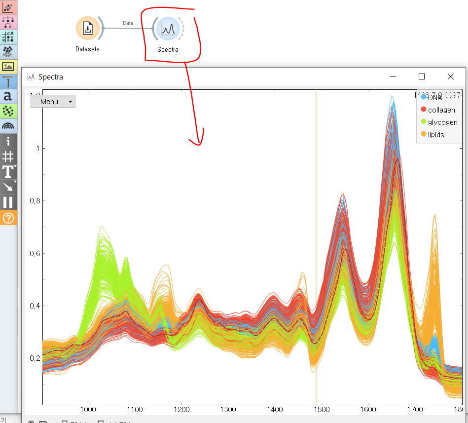 Spectra 위젯을 활용하면 공간정보 없이 일련의 스펙트럼을 시각적으로 탐색할 수 있다.