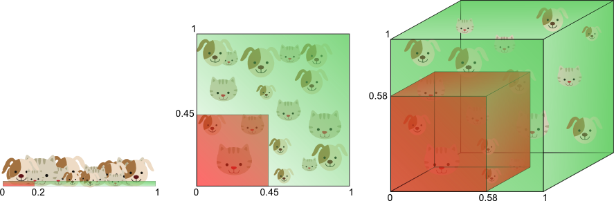-예) kNN 모델에서 차원이 커질수록 주변의 데이터들이 멀어짐