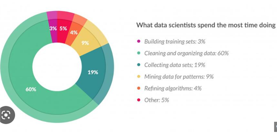 내가 직접 수집한 데이터든, 오픈 데이터든 데이터 셋을 활용하기 전에는 반드시 데이터 전처리 과정을 거쳐야 한다. 과학자들의 시간 사용을 살펴보면, 데이터 전처리(클랜징)에 60%에 달하는 시간을 할애한다는 것을 알 수 있다. 데이터 전처리 과정에선 중복된 데이터 셋 제거, 필요 없는 특성 정보 삭제, 오염된 데이터(모델에 최적화에 방해되는) 제거, 이상치 제거, 변수 가공(Feature Engineering), 결측값 제거 등을 통해서 학습의 효율성을 높인다. 특히 데이터의 질을 높이기 위해선 변수의 연관성과 속성 정의 가 중요하다.