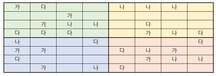 -한 구역 내에서 가,나,다의 수가 같을 때가 있을 때는 스스로 기준을 정해서 추상화 하도록 지도.