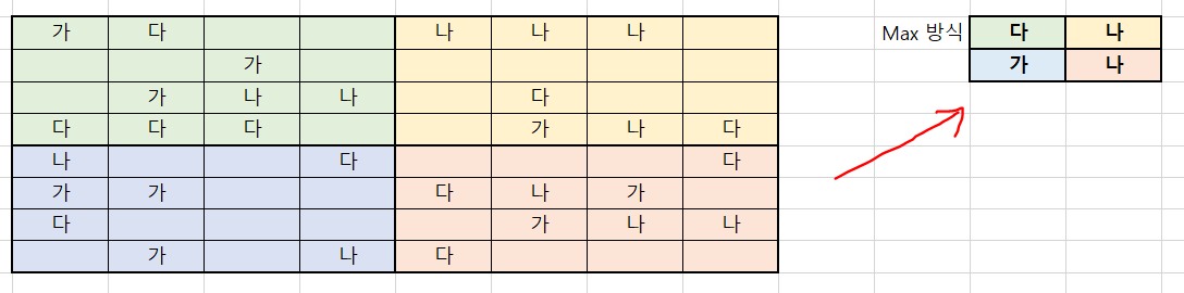 -4*4 데이터를 초록구역, 노랑구역, 파랑구역, 빨강구역으로 나눈 후 Max 함수, 즉 각 구역에서 가장 많은 데이터로 추상화
