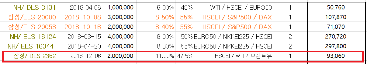 ▶현재 보유하고 있는 ELS/DLS 상품 목록